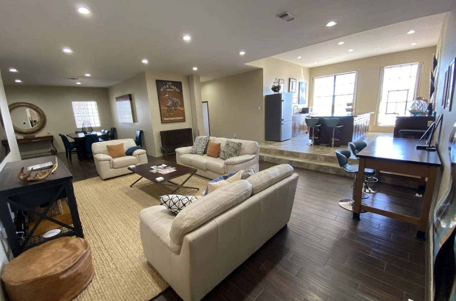Stretch out, while still being together, as this unique space has loads of seating options for dining, games, or just relaxing.