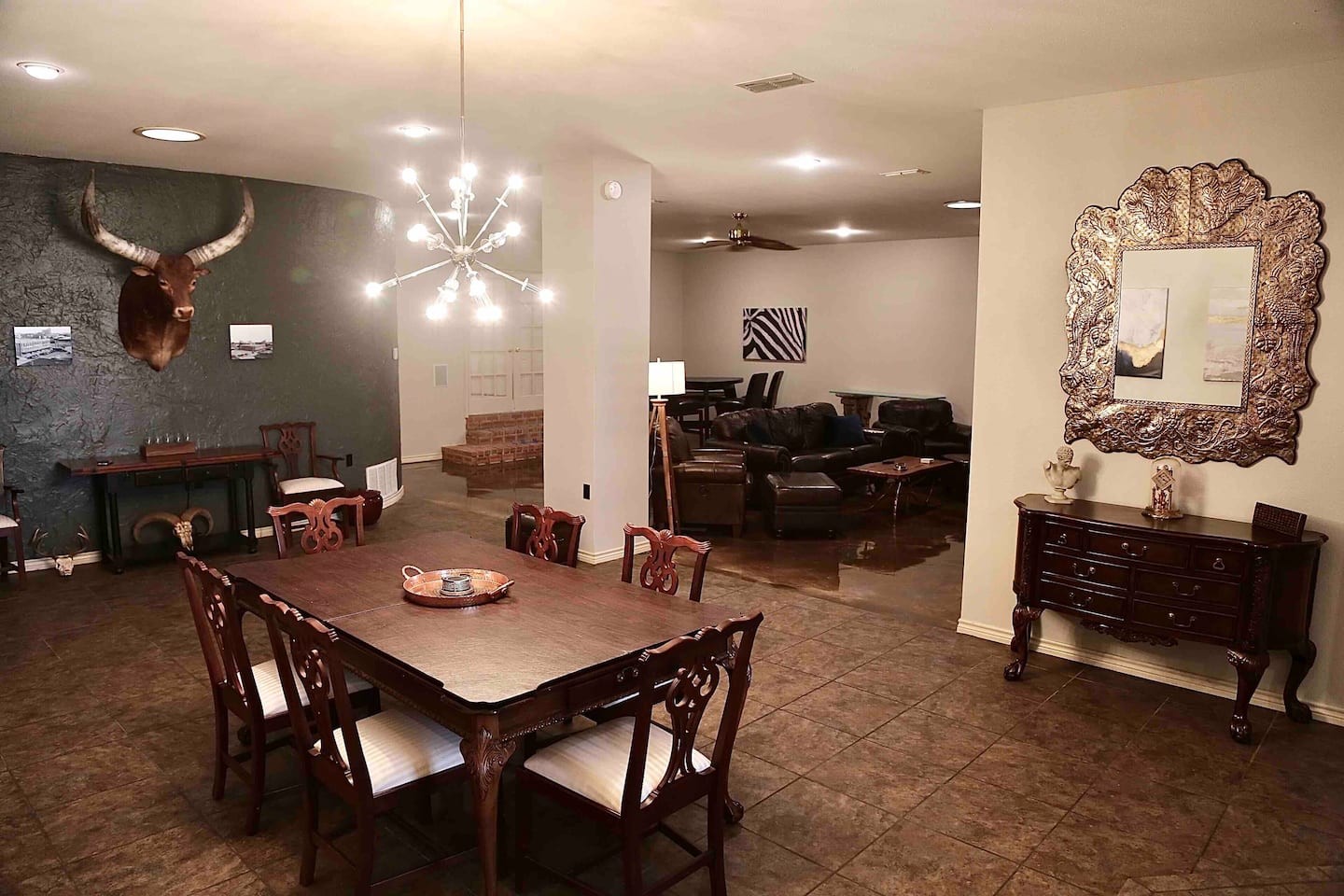 This newly remodeled 3,000 square foot loft condo is located in a beautiful brick warehouse built in 1927 and listed on the National Register of Historic Places.The master and two guest bedrooms include a variety of premium new mattresses including Helix, Purple, Bear, Nectar, and Layla. Both guest bedrooms feature 10’ tall windows fitted with blackout shades and noise machines. Tucked between the two bedrooms is a cozy desk area for work or school. Highlights of the master bath include a vast walk-in shower, jacuzzi tub, and double sink with ample counter space. Stretch your legs in the spacious living room that includes plenty of comfy seating while you check out the 65” Roku TV. Alternatively, work at the bar height table or Restoration Hardware corbel desk that was hand-carved from reclaimed teak. A new custom epoxy floor is juxtaposed against historical 'Abilene' brick steps that lead to the elevated master bedroom where a substantial king bed, lounger, and 55” Roku TV await you. The master closet is set up with two twin and one queen bed; another twin bed can be provided upon request to be used in a common space. The warehouse is located in the up and coming SODA district and mere blocks from the heart of downtown Abilene.
