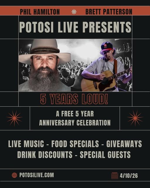 Join us for “5 Years Loud” at Potosi Live and celebrate five unforgettable years of live music, cold drinks, and the best community around. You've helped us build something special here in Potosi, Abilene, and the Big Country! We want to celebrate that in a BIG way.
