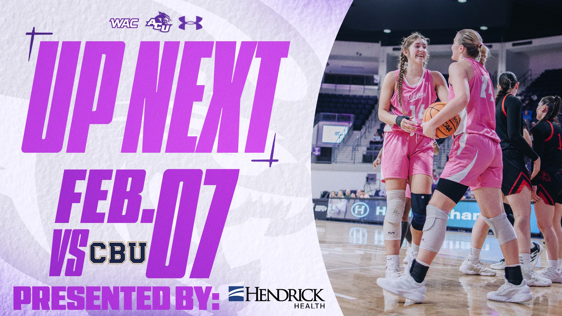 < Back ACU Women's Basketball vs California Baptist University February 7, 2026 1:00 PM –3:00 PM Share Moody Coliseum 1694 Campus Ct Abilene, Texas 79601(719) 325-9508 Website Email ACU Women's Basketball vs California Baptist University1694 Campus Ct Abilene, Texas 79601DetailsOpen in Google Maps Map Save Overview ACU Basketball Fans! Your ACU Women's Basketball Team takes on the California Baptist Lancers in our annual Hoops for A Hope Game Presented By: Hendrick Health! Come Pink Out Moody Coliseum for a good cause! Admission Buy Your Tickets at tickets.acusports.com Related Abilene Christian University Read More