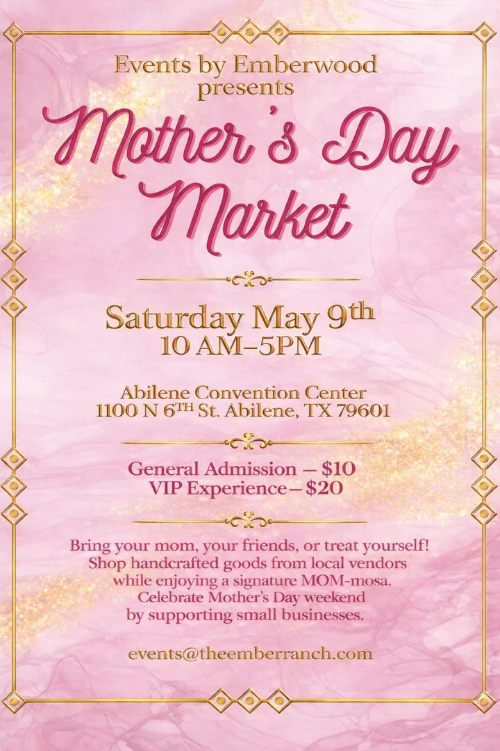 Hosted at the beautiful Abilene Convention Center, this Instagram-worthy market is designed to be a fun and stylish outing for you, your mom, and your whole mom squad.