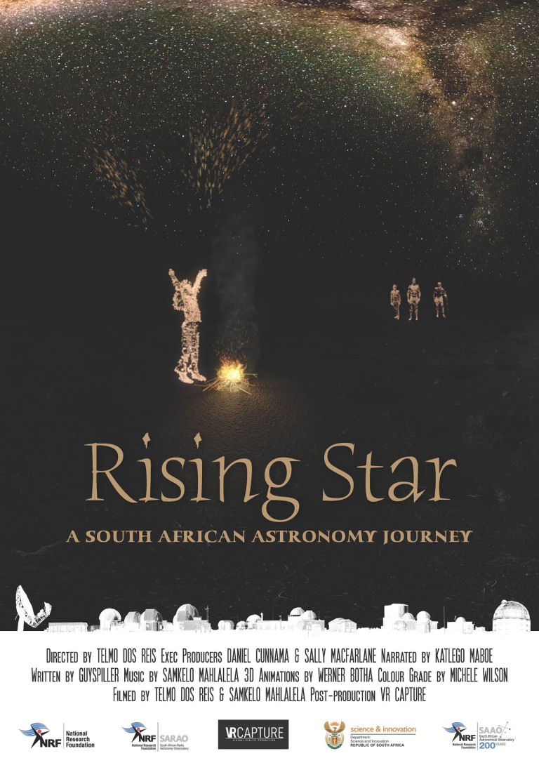 Rising Star takes you on an astronomical journey from our beginnings through the development of astronomy research in South Africa and looks at what the future of astronomy holds for the country. In addition to introducing multi-wavelength and multi-messenger astronomy, it highlights the many remarkable facilities hosted in South Africa along with some of their latest results. This includes unrestricted views of the 10-metre class Southern African Large Telescope and the most powerful radio telescope in the Southern Hemisphere, MeerKAT. The film is accessible to all ages and aims to excite audiences from around the world about South African astronomy, while inspiring the next generation of astronomers. As the first of its kind to be produced in Africa, Rising Star hopes to stimulate the production of many more locally-produced planetarium films from multidisciplinary fields, with the goal of popularising Africa’s numerous scientific achievements.