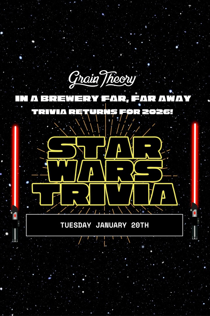 The Force will be strong with this one. Trivia returns to Grain Theory after the holiday break, and we’re kicking things off with a galaxy-sized Star Wars Trivia Night. From the original trilogy to the prequels, sequels, and even the obscure corners of the expanded universe, it’s time to see who truly belongs in the Jedi Council—and who’s destined for the Sarlacc pit.