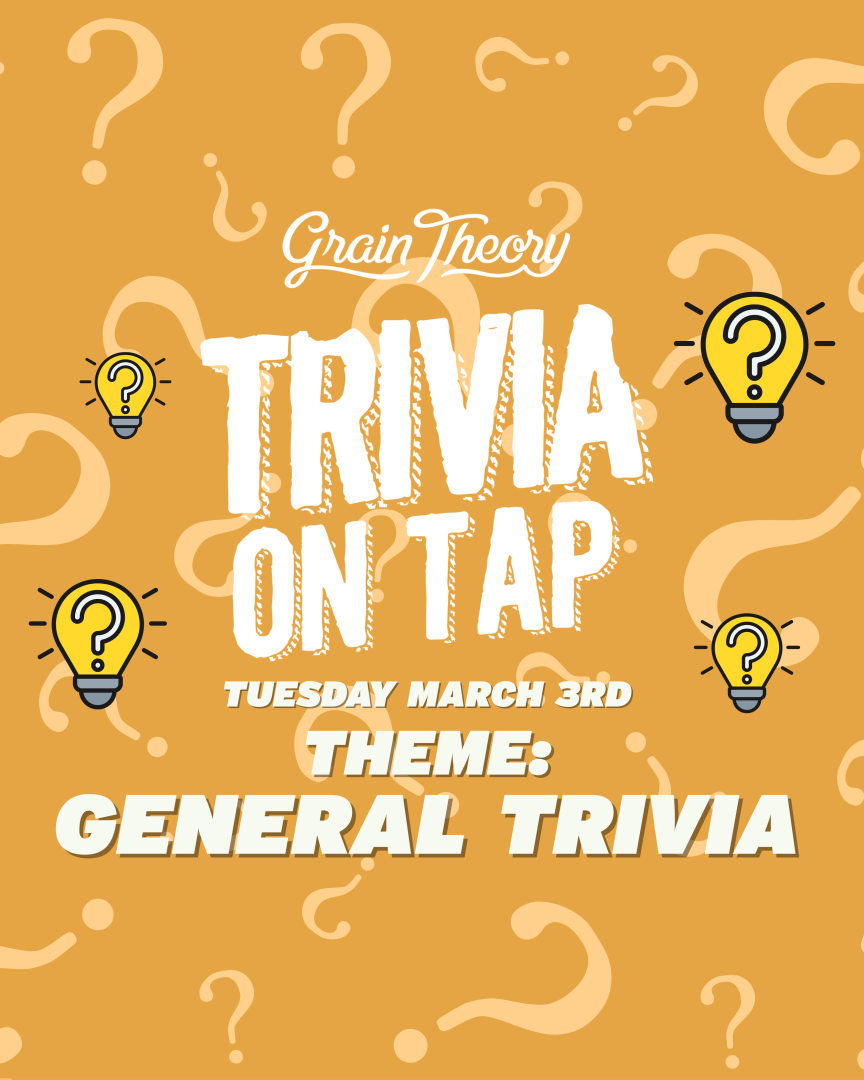 We’re kicking off our March trivia lineup with something simple: General Trivia. No theme, no hints, no predictable direction. Just a full night of questions that could be about anything and everything. Movies, history, music, random facts you forgot you knew—if it exists, it’s fair game.